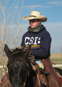 Working on the family ranch was part of Midnight’s everyday life. He did it all: working with the livestock, operating the backhoe, bulldozer, trucks, quads; building corrals, fence or an engine. On the ranch, at school or in the show ring Midnight was branded, “Cowboy,” “Cowboy Tough.”